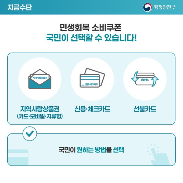 민생회복 소비쿠폰은 다음 중 하나를 선택해 수령 가능합니다.